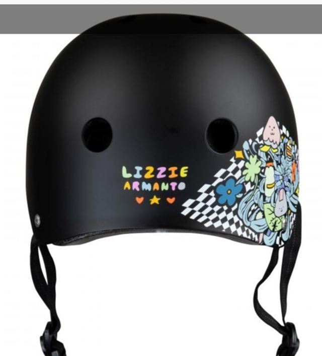 Rugged ABS shell with EPS Liner and no sweat air vents. Washable heat sealed comfort foam. Multi point strap adjustment with no pinch buckle. Pro signature model for Lizzie Armanto.