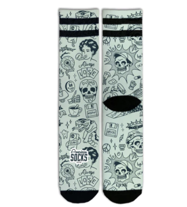 Inspired by the lifestyle of Board Sports and Alternative Culture, American Socks are designed for action and endurance. The reinforced Heel, Sole and Toe deliver a comfortable padded step and high-performance on daily lifestyle. Unique designs to show who you are and how you feel through Self-Expression and Advanced materials that will take you anywhere you want to go.