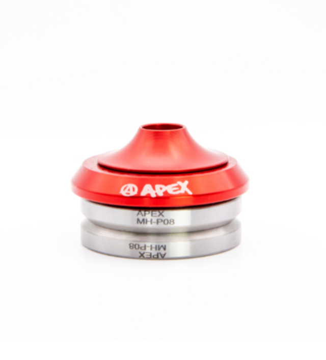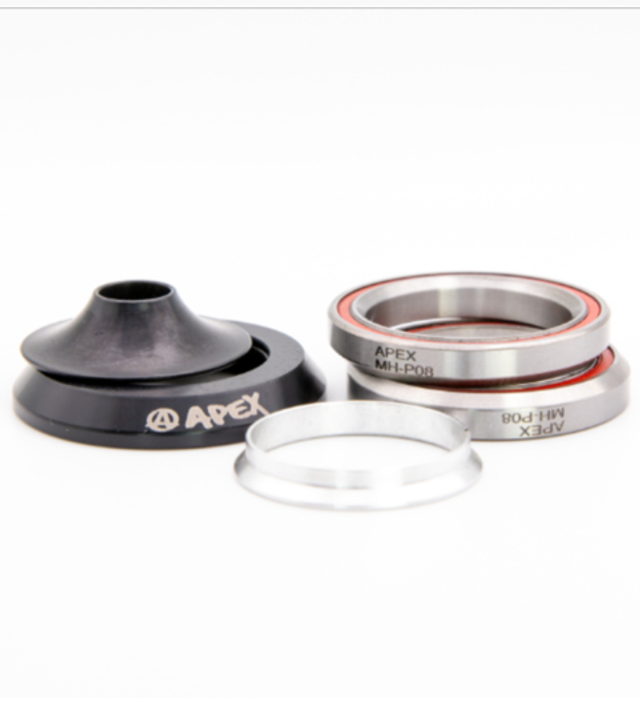 This headset includes two bearings as well as the anodised Apex top cap, split washer and matching volcano washer for riders using SCS.