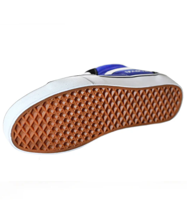 The latest collaboration between Vans and Dogtown has arrived in the form of the Vans x Dogtown Violet Blue Sk8-Hi. This iconic high-top shoe has been blazing trails since its inception. Made with durable suede and canvas uppers, it exudes a bold attitude. The shoe also features reinforced toe caps, padded collars for support, and our signature rubber waffle outsoles. Despite its classic design from 1978, this Sk8-Hi shoe remains just as innovative and groundbreaking today. This Limited Edition Vans x Dogtown shoe boasts tradition with the iconic Dogtown logo on the heel and the Dogtown 'Creeping Rat' on the Vans sidestripe, making it a truly one-of-a-kind offering.