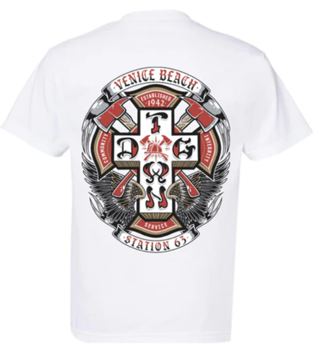 Join forces with Dogtown and Venice Beach Fire Station #63 and grab this premium T-shirt that pays tribute to the courageous and committed individuals who risk their lives to protect us. A portion of every purchase will help support the Fire Station.
