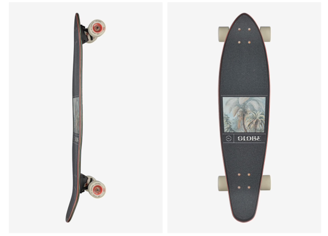 The Bells in colour Pitcher is a 34" long wheelbase tapered longboard. Made of Resin-8 hard rock maple featuring 6.0” Tensor Alloys trucks and 65mm 78a SoftSider wheels and a Black griptape with print. Dimensions are 34” x 8.5” x 21.75”wb