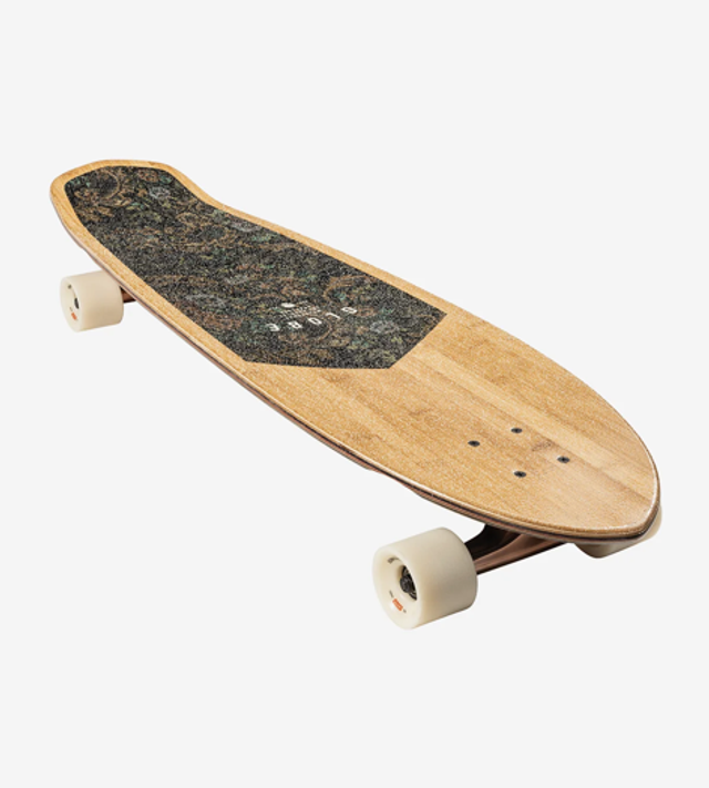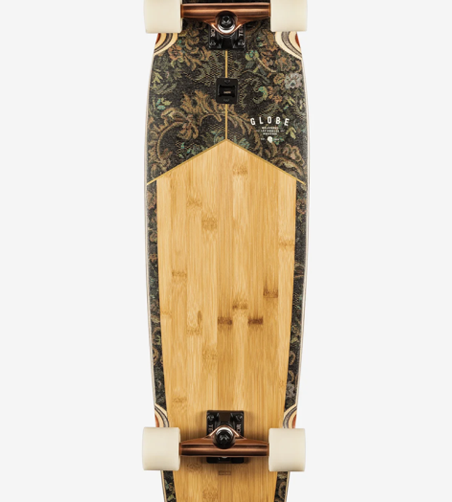 The Blazer XL in colour Bamboo/Floral Couch is a GLOBE long length diamond-tail with built-in bottle opener and soft conical wheels. It is available in size 36.25" x 9.75" x 21.5"WB. It is made of Bamboo. It has a mellow concave with kick tail and 6.0" Tensor alloy trucks with 62mm 78a wheels. It features a clear broadcast grip and fabric inlay art.