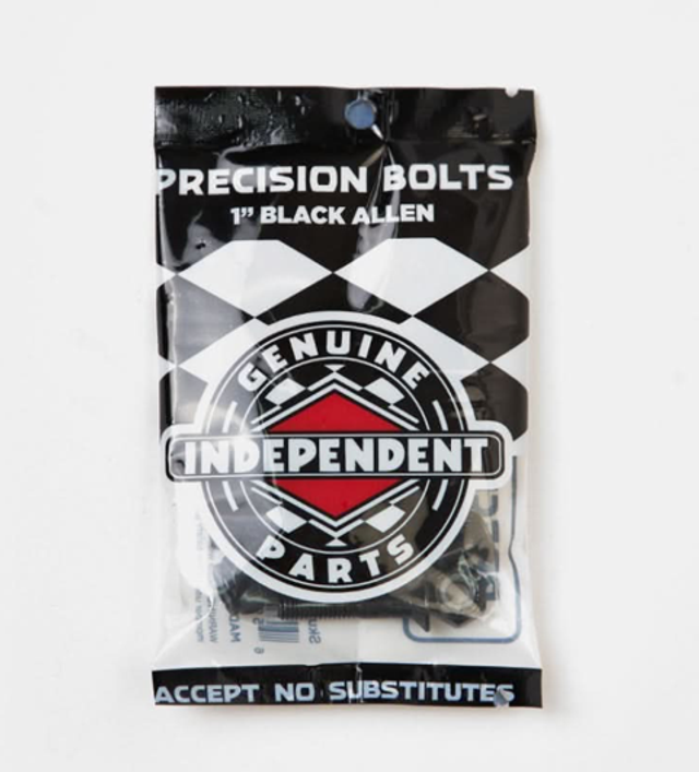 The Independent Allen Bolts are a great set of no-fuss black bolts from arguably the top hardware company in the game. Ideal for any set-ups without risers. Genuine Independent parts - Accept no substitutes