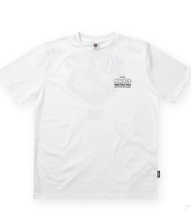 Woven neck and side Dudes label.